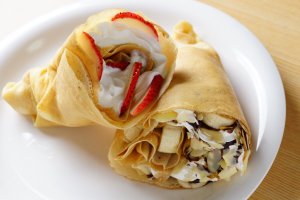 もちもちのクレープ生地をクリームとシロップで包んだ王道の生クリームクレープです。シロップは、チョコやキャラメル、ストロベリーなど様々な種類をご用意しています。